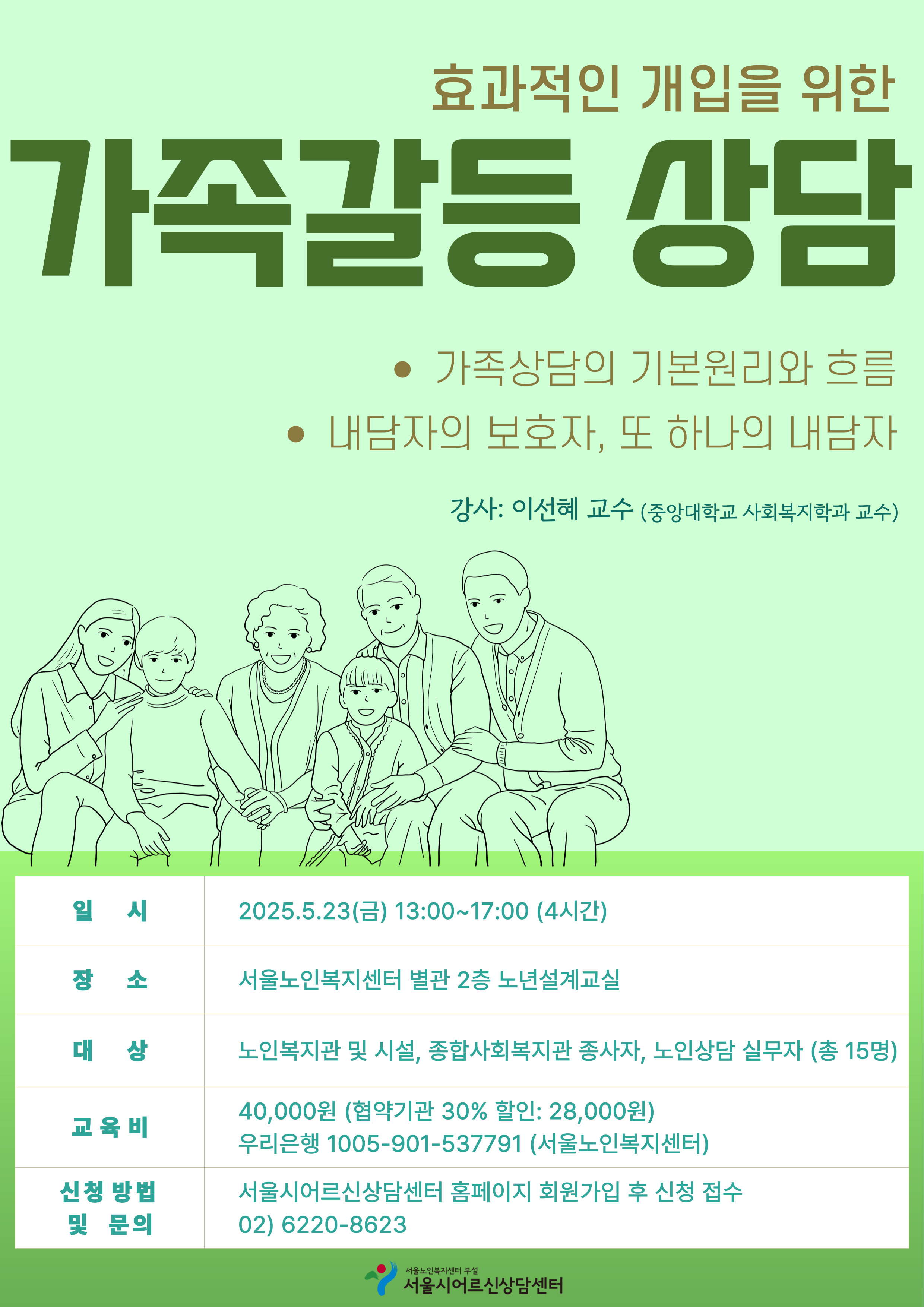 - 신청방법: 서울시어르신상담센터 홈페이지 회원가입 후 교육 신청