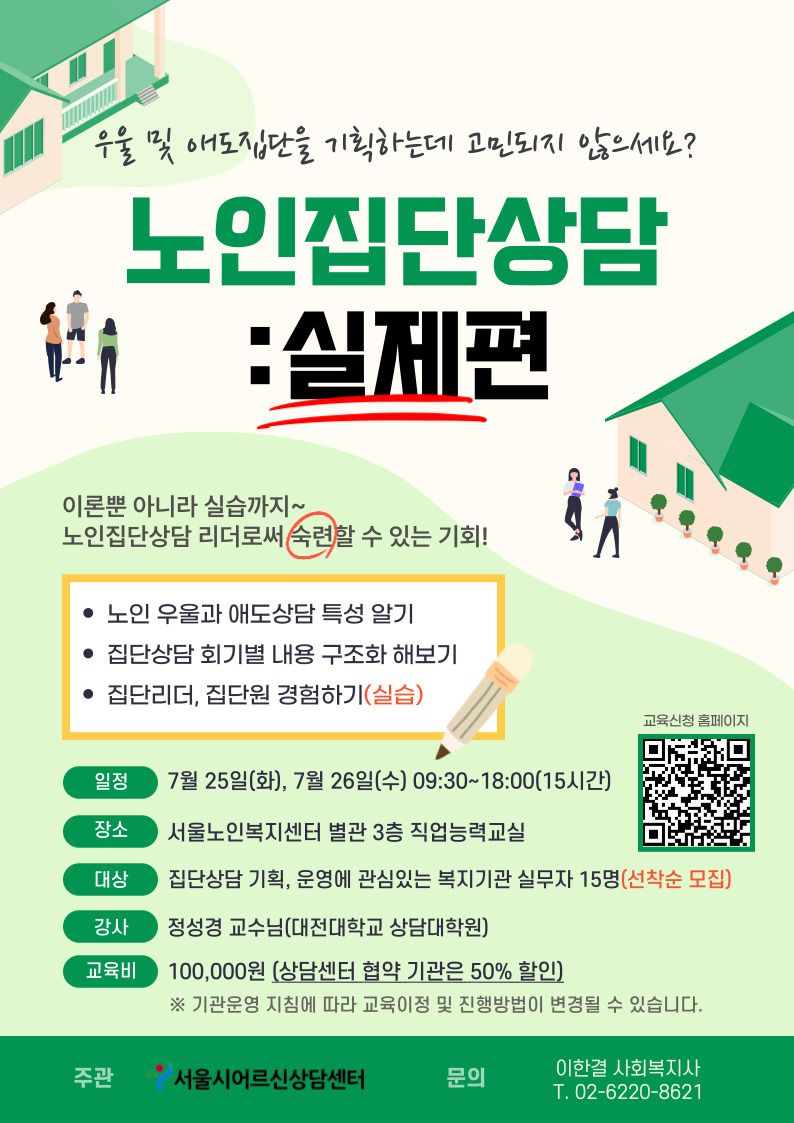 | → | [상담교육] 2023 노인집단상담교육: 실제편 참여자 모집 안내 | 관리자 | 941 | 2023-06-02 | |