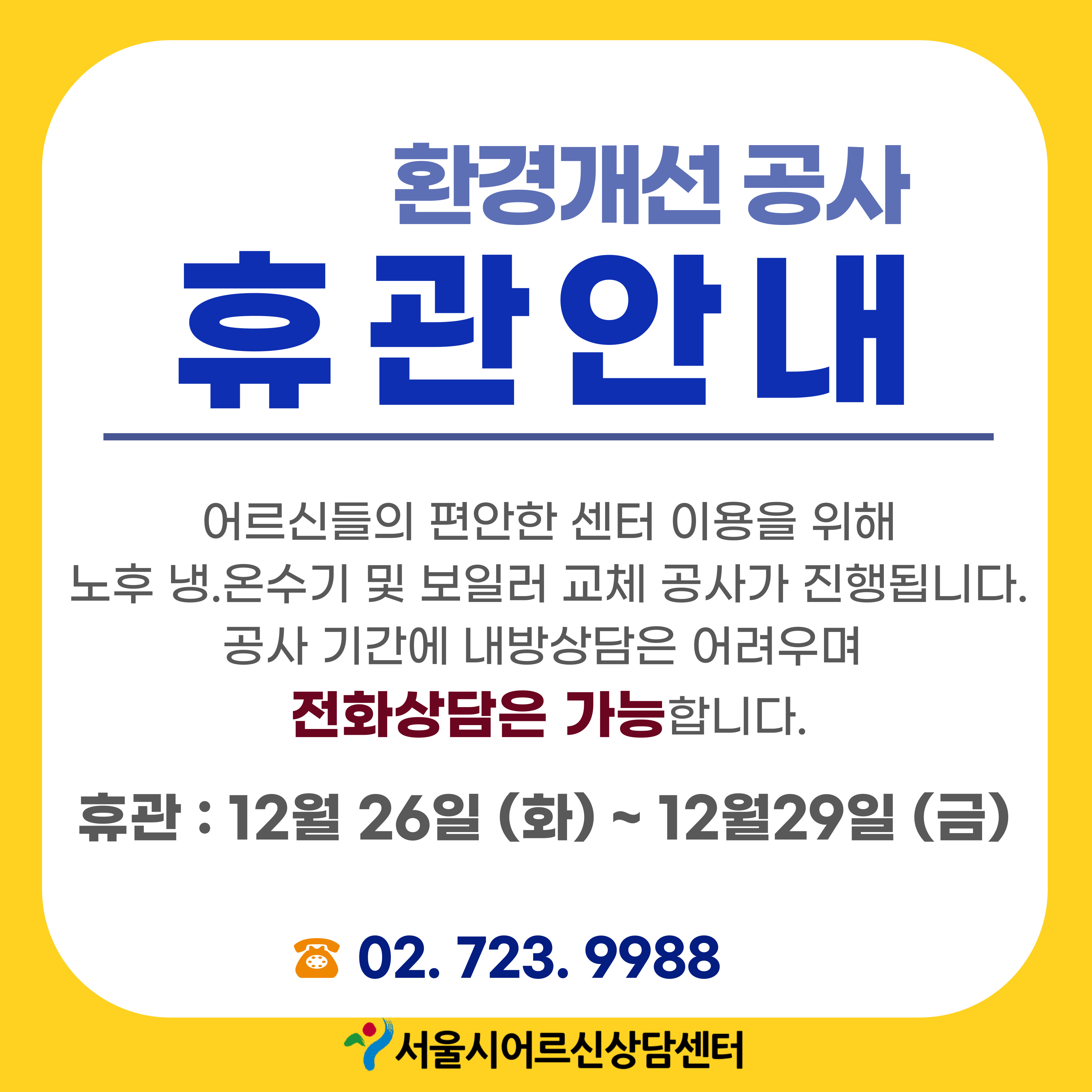 | [공지] | 서울시어르신상담센터 카카오톡 채널 추가 안내 | 관리자 | 307 | 2025-11-21 | |