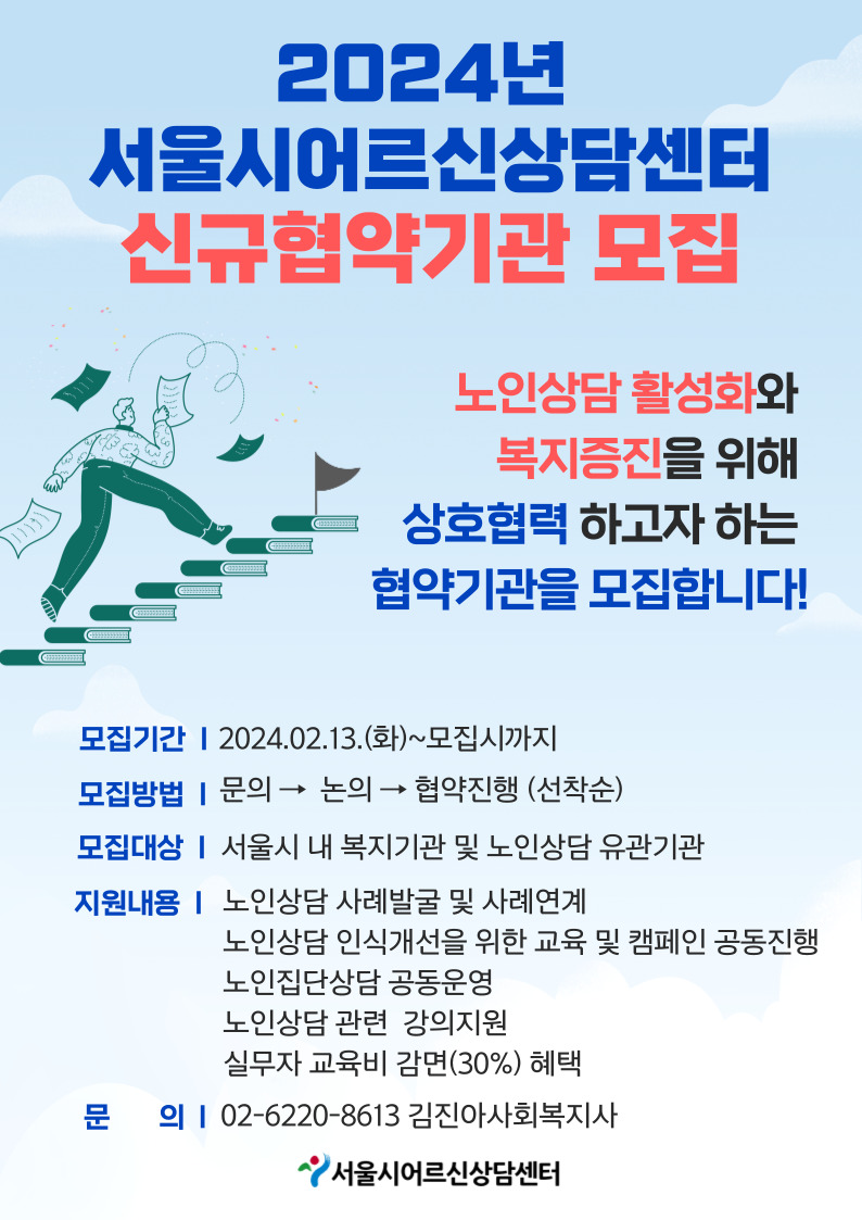 | 164 | [상담교육 신청 안내] 사회복지현장의 실천지혜: A부터 Z까지 | 관리자 | 646 | 2024-02-15 | |