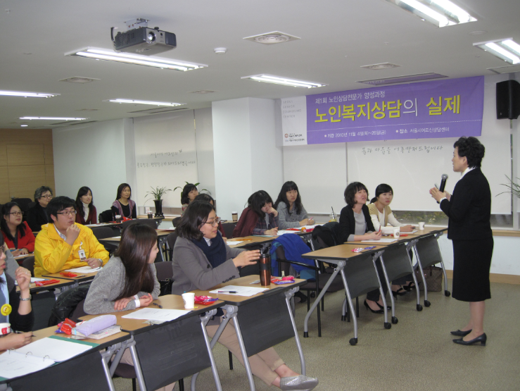 제 1회 노인상담전문가 양성과정 <노인복지 상담의 실제> 3,4회 강의가 11/11(목)에 서울시청소년상담지원센터 박애선 소장님의 강의로 시작되었습니다.