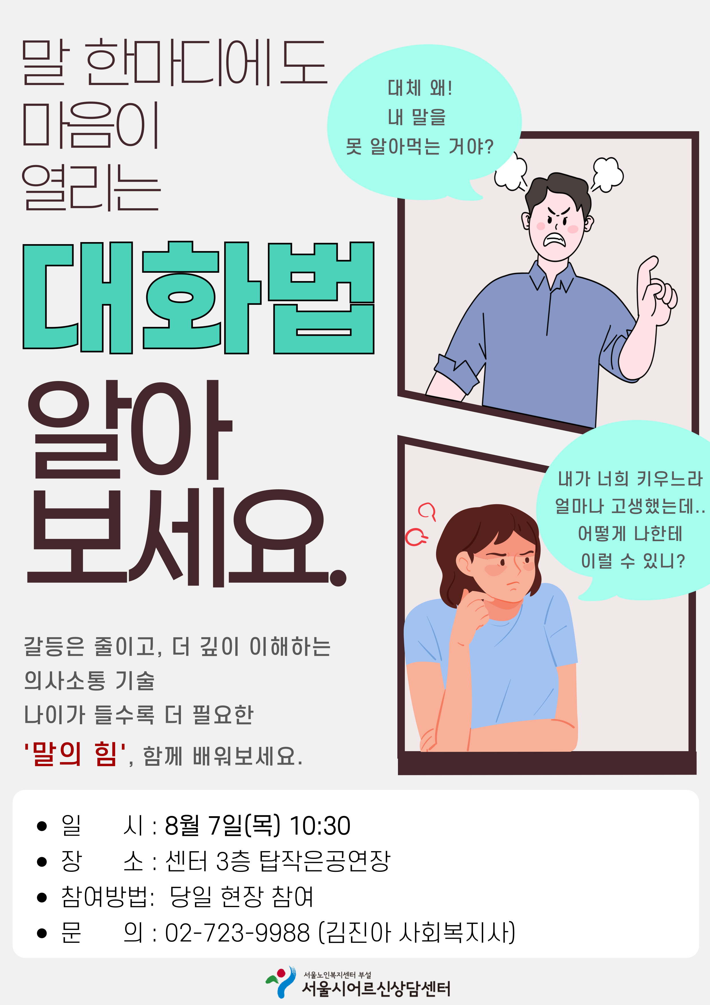 | 204 | [5월 상담강좌: 노년기 감정조절_두번째 화살 피하기] 교육참여 안내 | 관리자 | 418 | 2025-05-08 | |