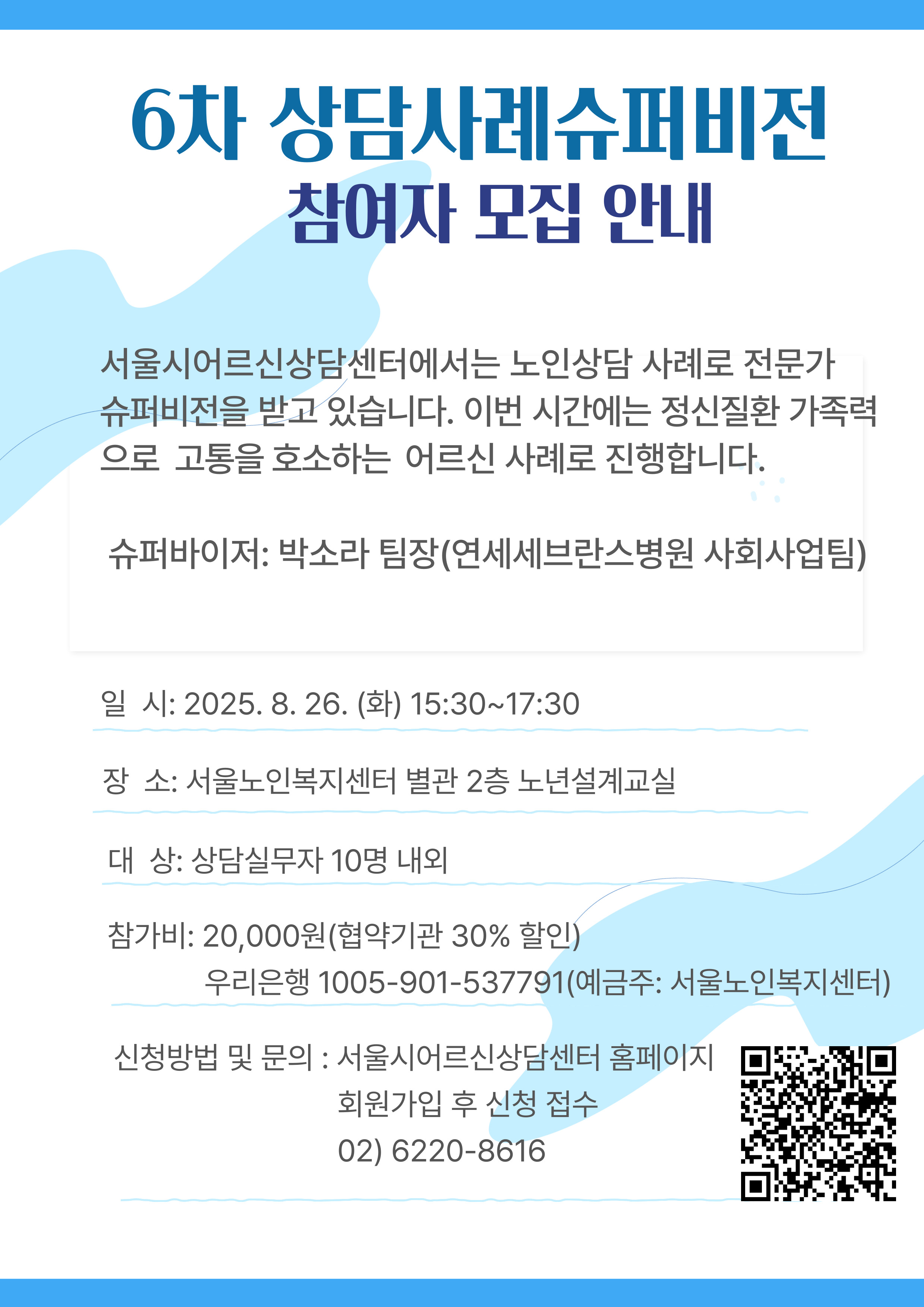 | 212 | [9월 상담강좌: 노년기 상실의 시대! 회자정리의 지혜] 상담강좌 참여 안내 | 관리자 | 374 | 2025-09-02 | |